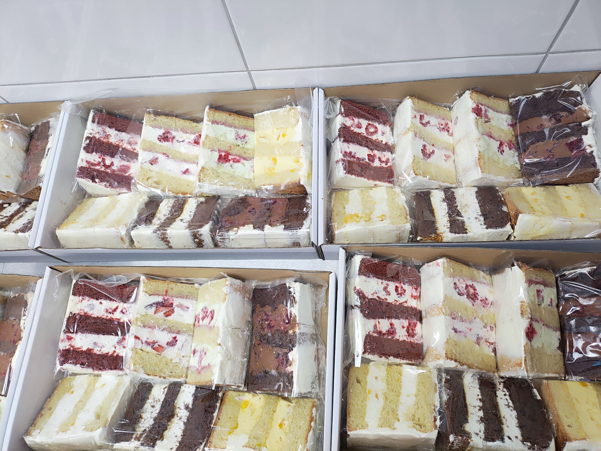 Výběr korpusů: vanilkový, čokoládový, pistáciový, oreo, ořechový, red velvet.