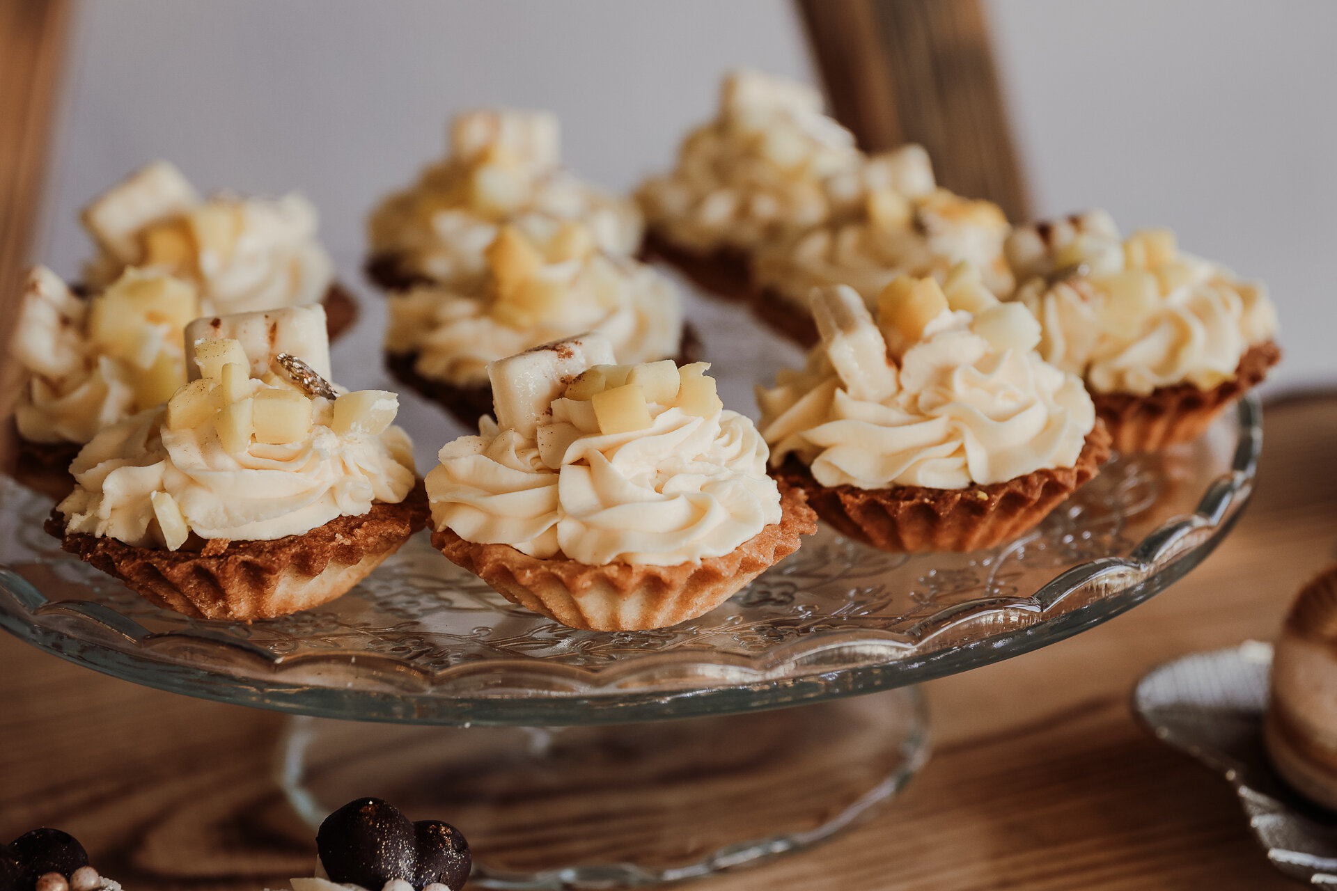 Čeká na vás pestrý výběr dobrot: cupcakes, makronky, tartaletky, dortová lízátka, skleničkové dezerty, dortové nanuky, panna cotta, mini pavlovy i mini dortíky – všechno připravené s láskou a pro radost!